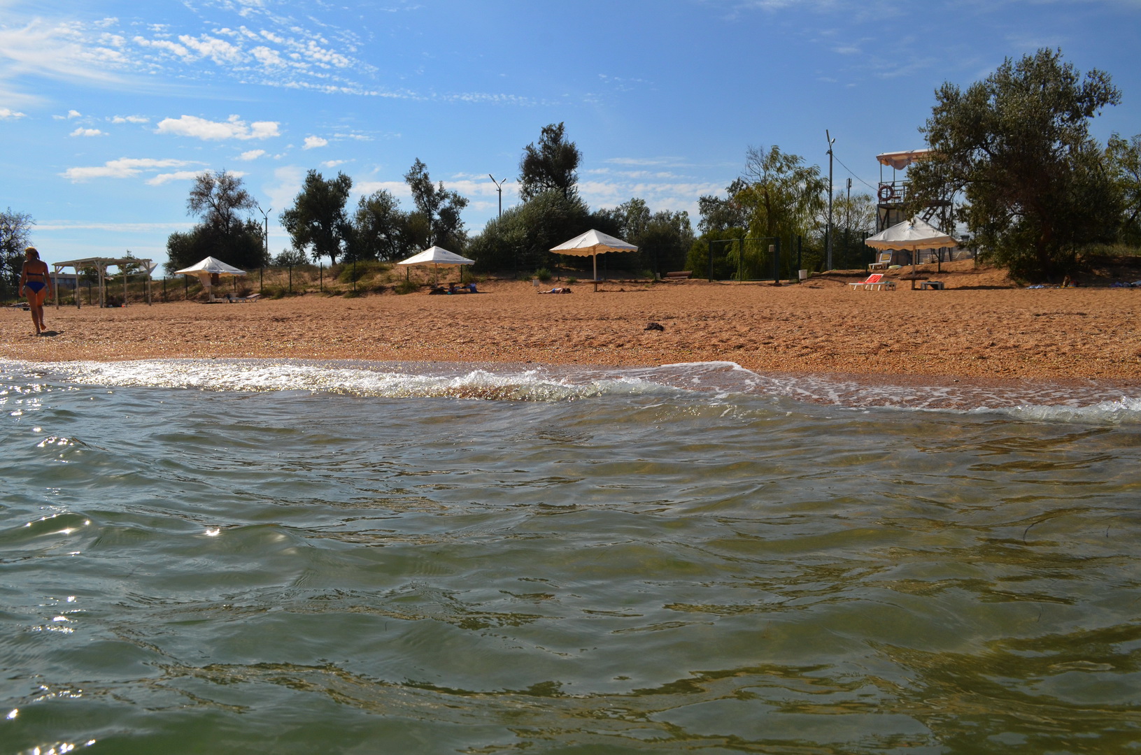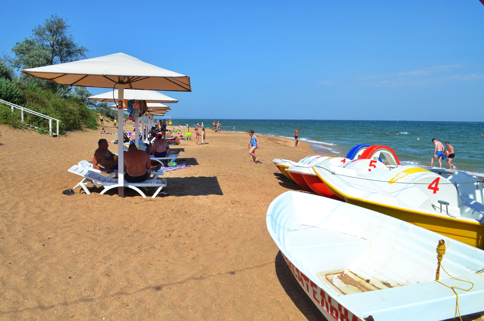 Сейчас, когда мы фотографировали территорию частного гостевого дома "Виктория", практически, никого и это понятно - температура воздуха +30С, температура воды в море +25С, поэтому все на пляже и мы с вами сейчас посмотрим фото пляжа, расположенного в 50 метрах от частного гостевого дома "Виктория".Пляж в Героевке простирается на 4 километра широкой песчаной полосы, можно выбрать любое место, и где совсем уединенно, и где более людно, но места хватает всем даже в разгар сезона, когда все номера заняты, как было 9 июля 2021 года на "многолюдном" пляже см. фотогалерею: